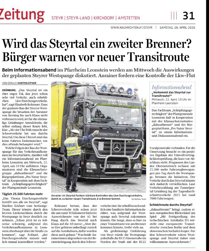 Informations- und Dikussionsabend „Verkommt das Steyrtal zur Transitroute?“ (da.Huat.brennt)